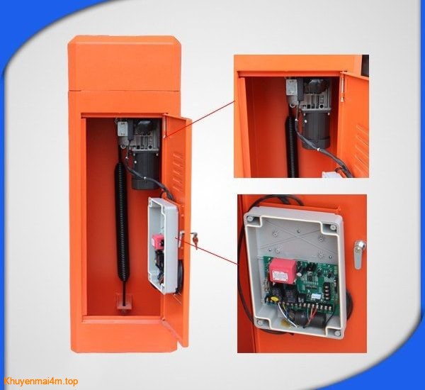Động cơ của barie bao gồm hệ thống trục, lò xo, trợ lực và những bảng mạch điều khiển barie. Tất cả những thiết bị này đều được đặt trong một tủ thiết bị hình trụ.