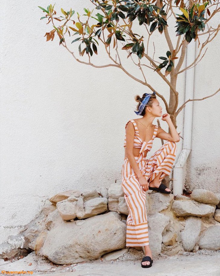 Với những cô gái thích vẻ đẹp dịu dàng và chỉ muốn hở “nhẹ”, kiểu dáng áo sơ mi hay áo tay bồng là lựa chọn “vẹn cả đôi đường”. Bạn có thể kết hợp áo crop top với quần ống loe thời thượng hay chân váy dài nữ tính. Chiếc vòng cổ layering và mũ cói là phụ kiện giúp set đồ của bạn thêm hoàn hảo.